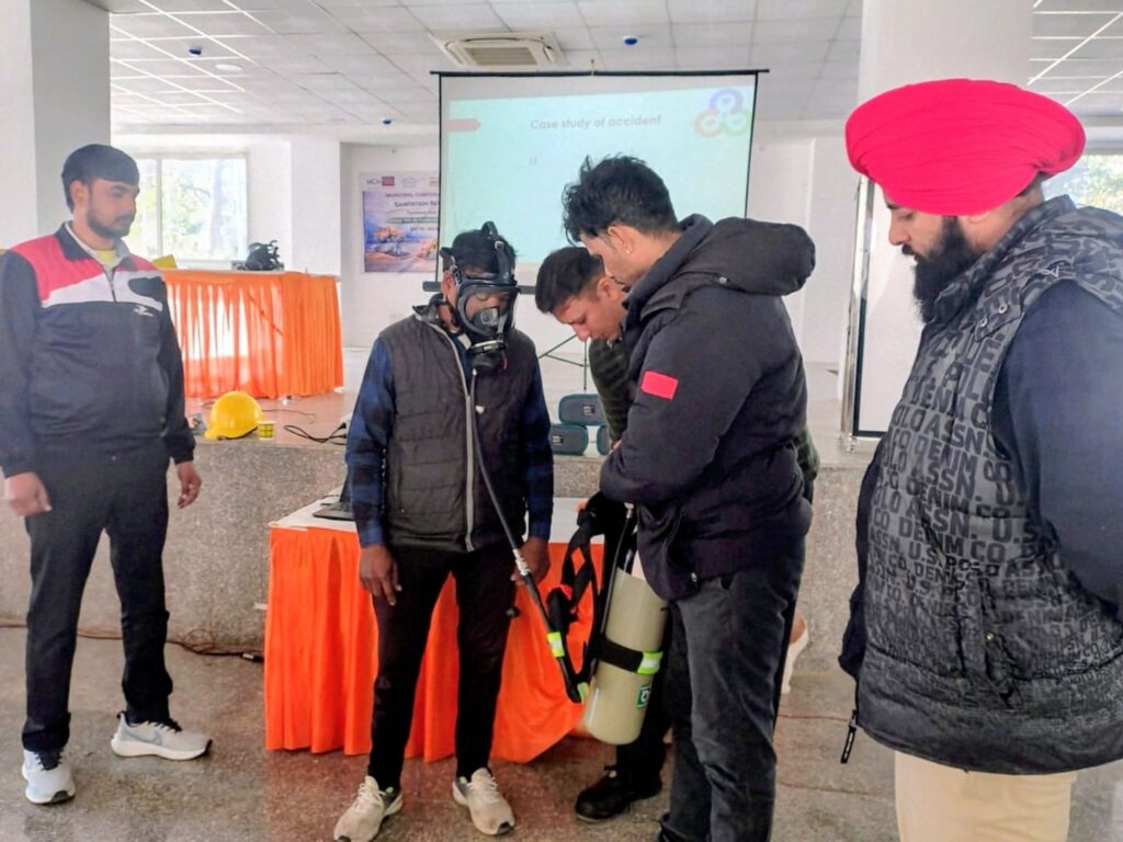 For the training, MCG invited Gaurav Kalia from Prakash Consultancy, an authorised safety professionals training agency empanelled with the Urban Local Bodies Department and the Public Health Engineering Department (PHED). During the session, detailed guidance was provided on safe methods of sewer and drain cleaning. A hands-on demonstration and practical training were conducted on the correct use of safety equipment required during such operations.